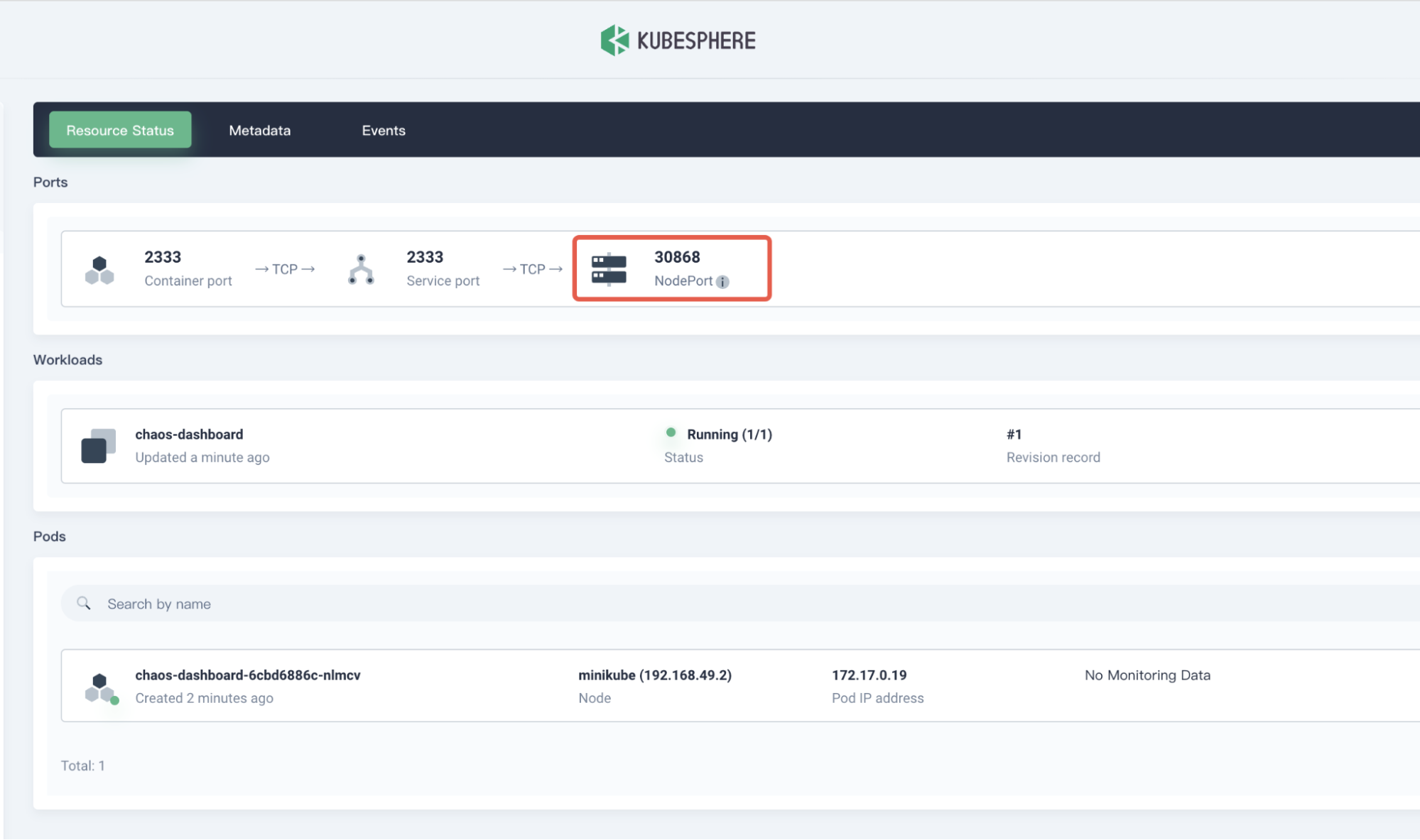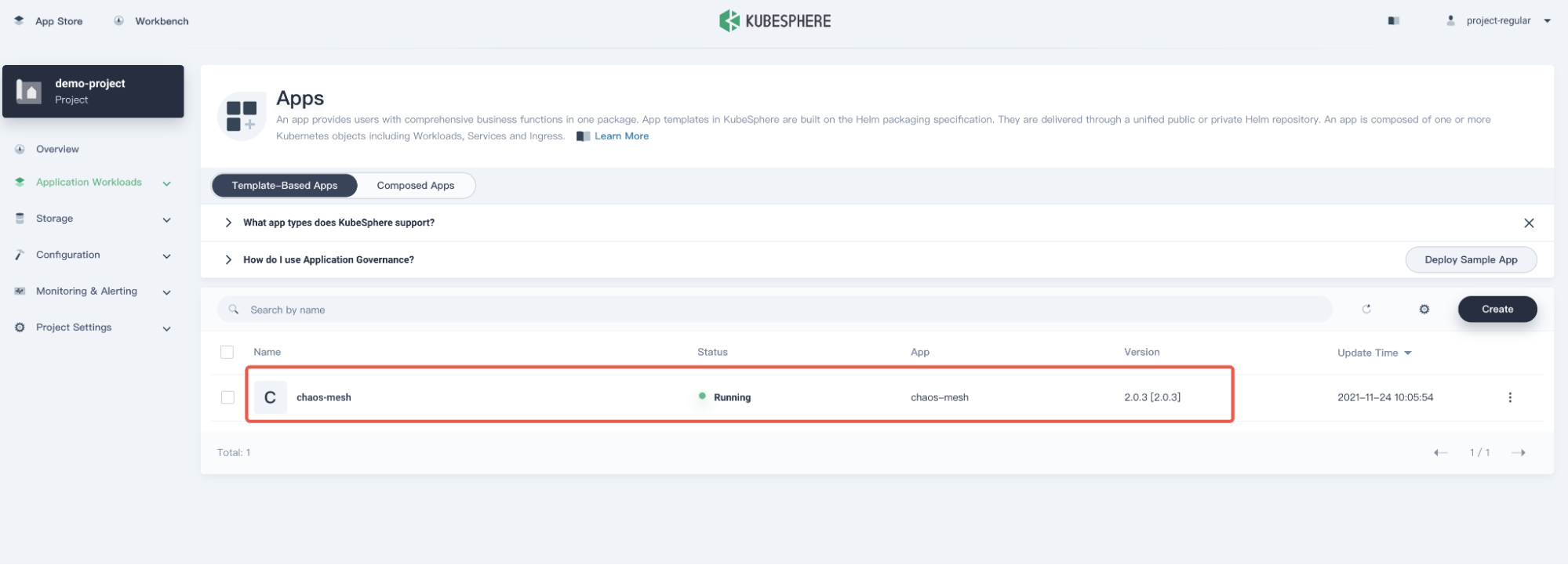 Wait for the deployment to be finished. Upon completion, Chaos Mesh will be shown as Running in KubeSphere.