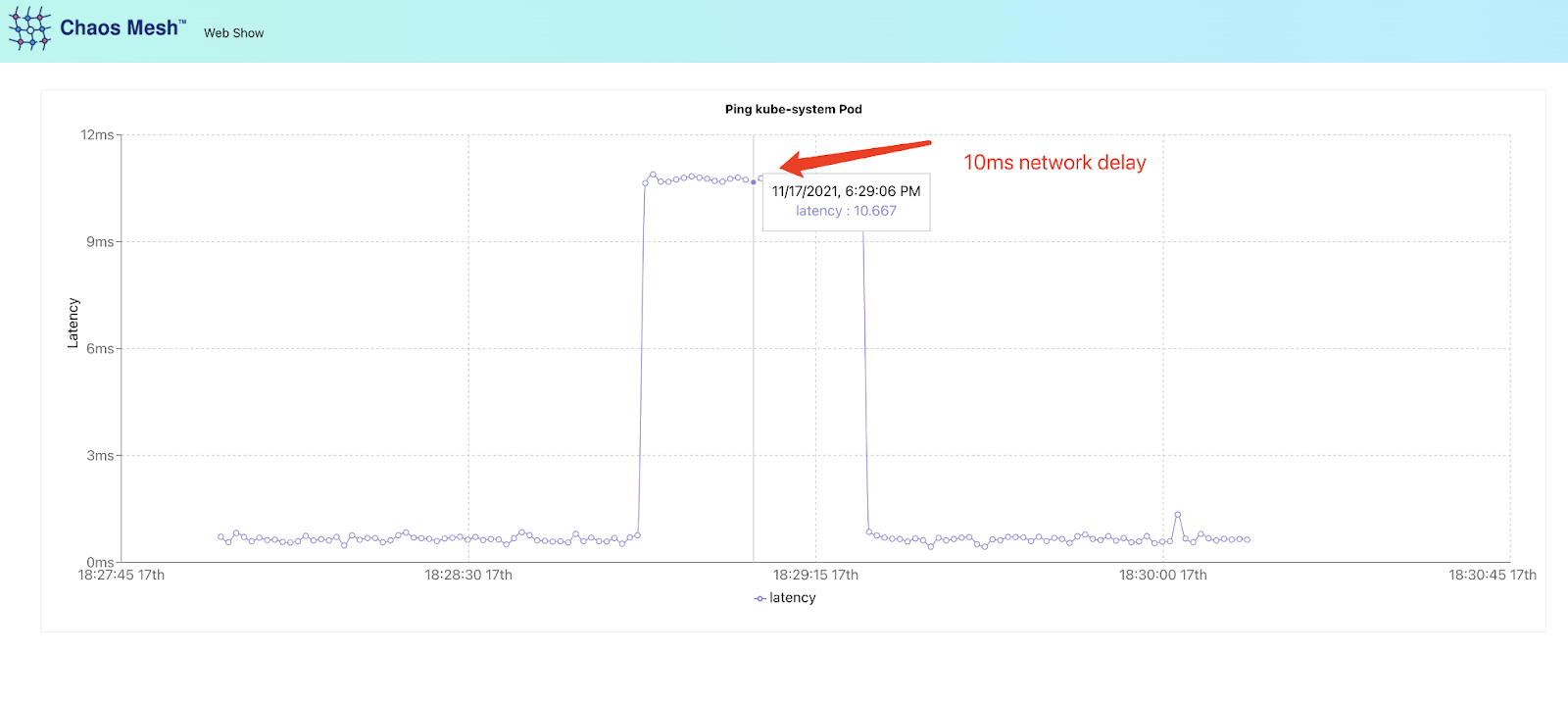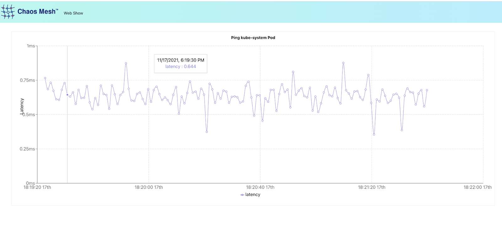 Note: The network latency of the Pod can be observed directly from the web-show application pad to the kube-system pod.